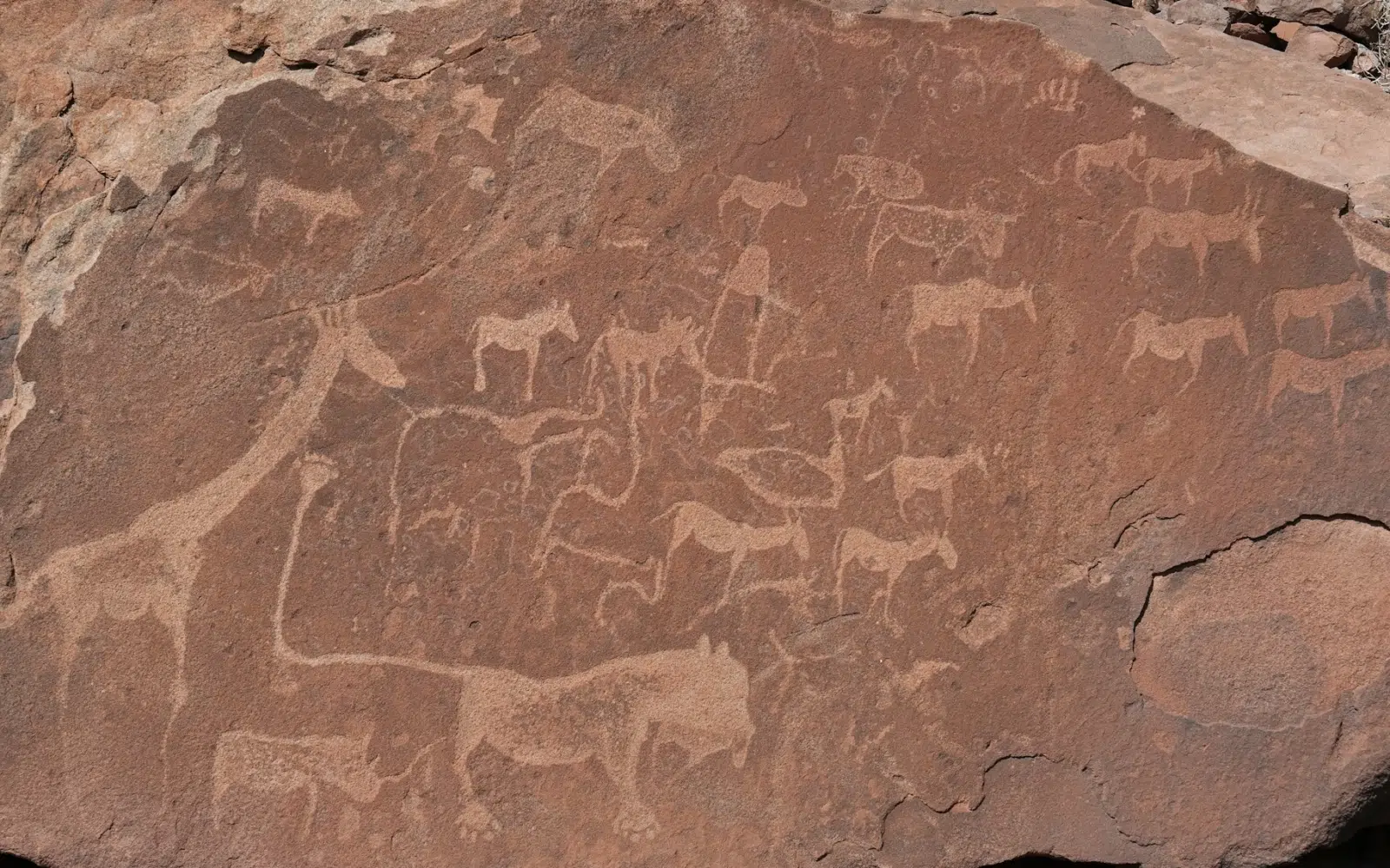Journée consacrée à la découverte de Twyfelfontein et de ses environs. Vous pourrez visiter le site de gravures rupestres, les orgues basaltiques et la Montagne brûlée. Possibilité de faire une excursion optionnelle dans la vallée de l’Huab à la recherche de la faune locale.