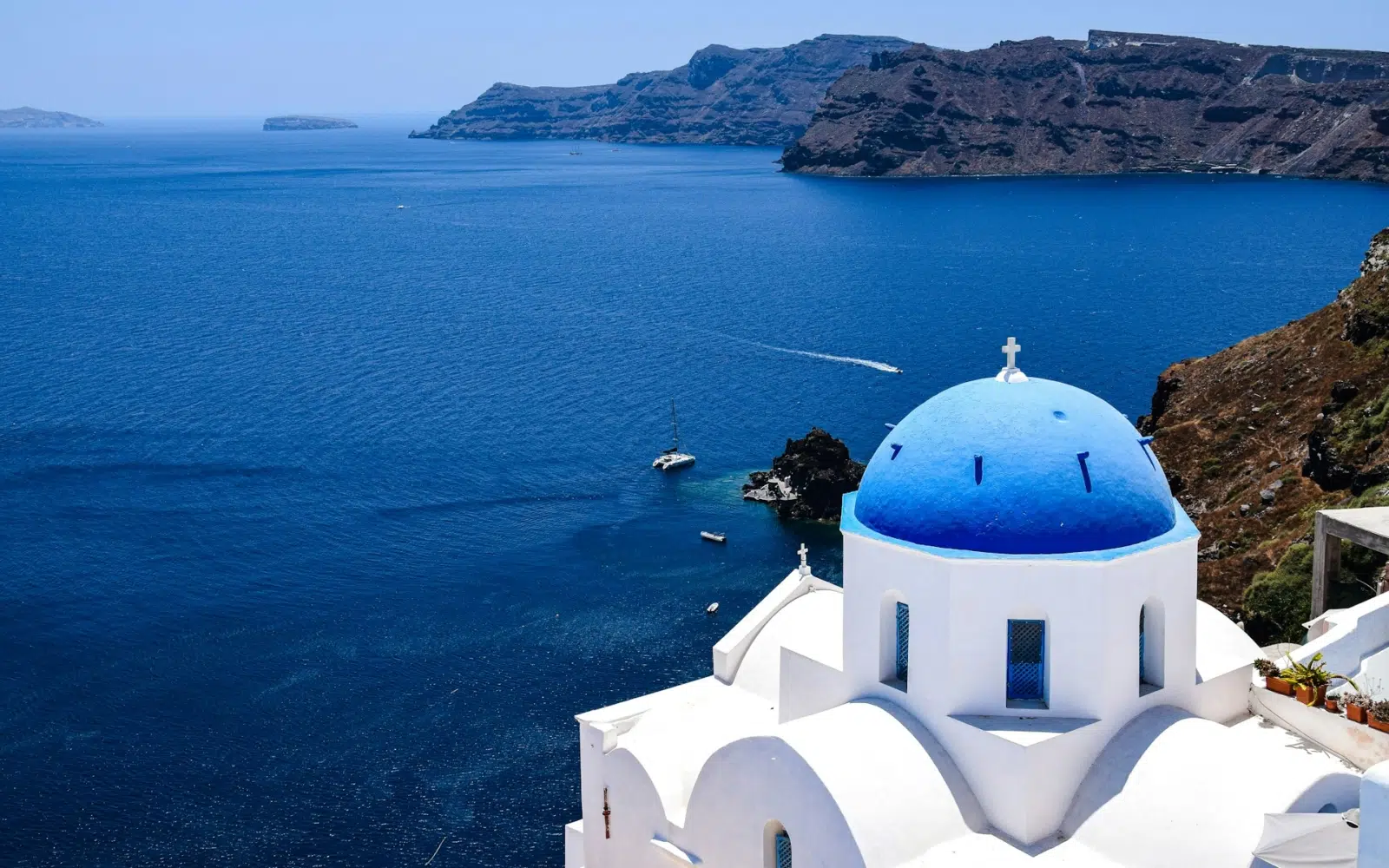 Encore 24h de libre pour prendre le large et contempler Santorin depuis la mer, quand les falaises s’embrasent sous la lumière du jour finissant. Savourer quelques douceurs et gâteaux secs sur la terrasse d’un café tranquille. Assister à une célébration dans le silence recueilli du monastère Sainte-Catherine. Naviguer vers les îlots volcaniques de Néa Kaméni et Thirassia, entre fumerolles et roches brûlantes. Se perdre dans les ruelles blanches et fleuries de Fira, ou flâner à l’ombre des ruelles de Monolithos, Messaria et Vothonas, au rythme de la sieste. Se balader à cheval à travers le village traditionnel de Megalochori…